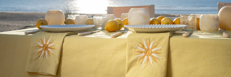 Servet Always Summer, naturel met geborduurde palm, 45x45, set van 2